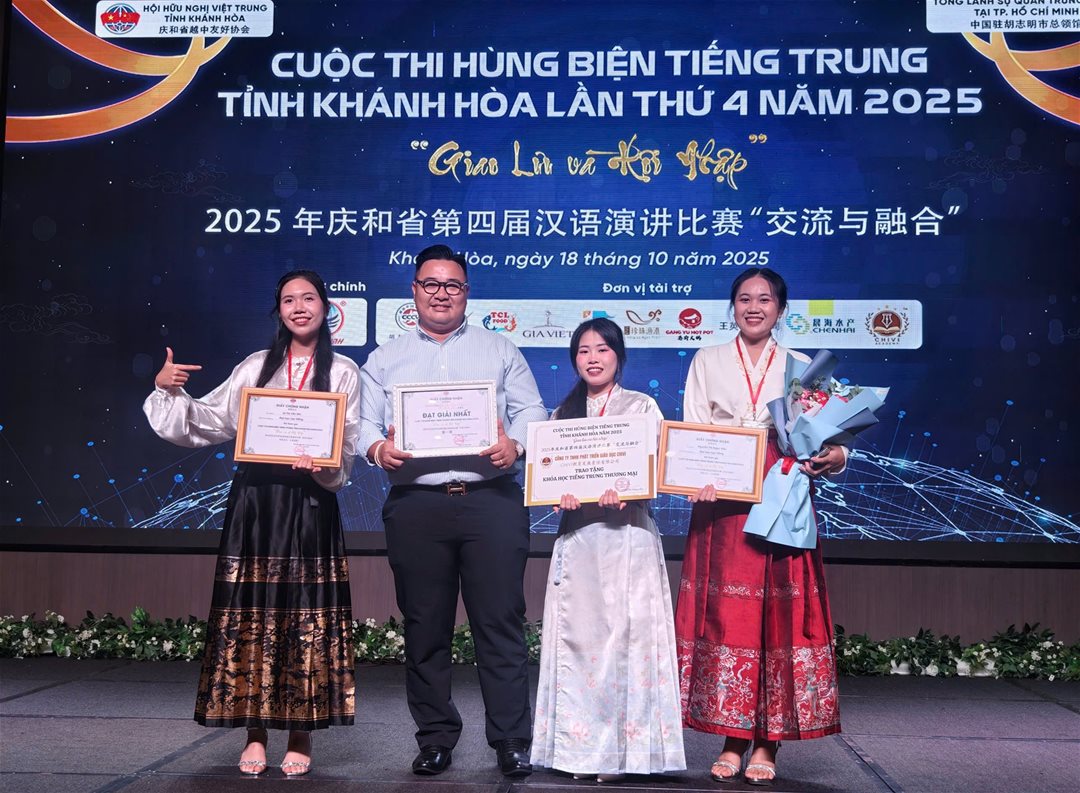Surpassing many strong competitors from other universities, the Chinese Language team of LHU, including Nguyen Thi Ngoc Hau, Le Thi Yen Nhi, and Vo Thi My Hanh, excellently won the First prize at the 4th Chinese Speaking Contest themed “Exchange and Integration”, held on October 18, 2025, in Khanh Hoa Province.