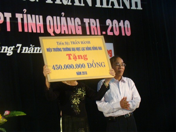Busy at his school management, Dr. Tran Hanh is not only concerned for teaching and learning but also interested in teaching staff’ s food and clothing, rice and money and students’ lives. He is always thinking of the poor and studious students and poor pupils in Quang Tri where he was born. Particularly, he offered students hundred of scholarships that he had accumulated.