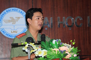 Phát biểu tại buổi lễ, Thượng tá Ngô Thanh Hùng đánh giá cao chất lượng và uy tín đào tạo của nhà trường. Về phía đồng chí Hoàng Minh Nhân, trong thời gian tới Đoàn thanh niên Tỉnh sẽ tiếp tục đề xuất kế hoạch để cùng phối hợp với Trung tâm Ngoại ngữ Tin học Lạc Hồng mở thêm các khóa bồi dưỡng như thế nữa.
