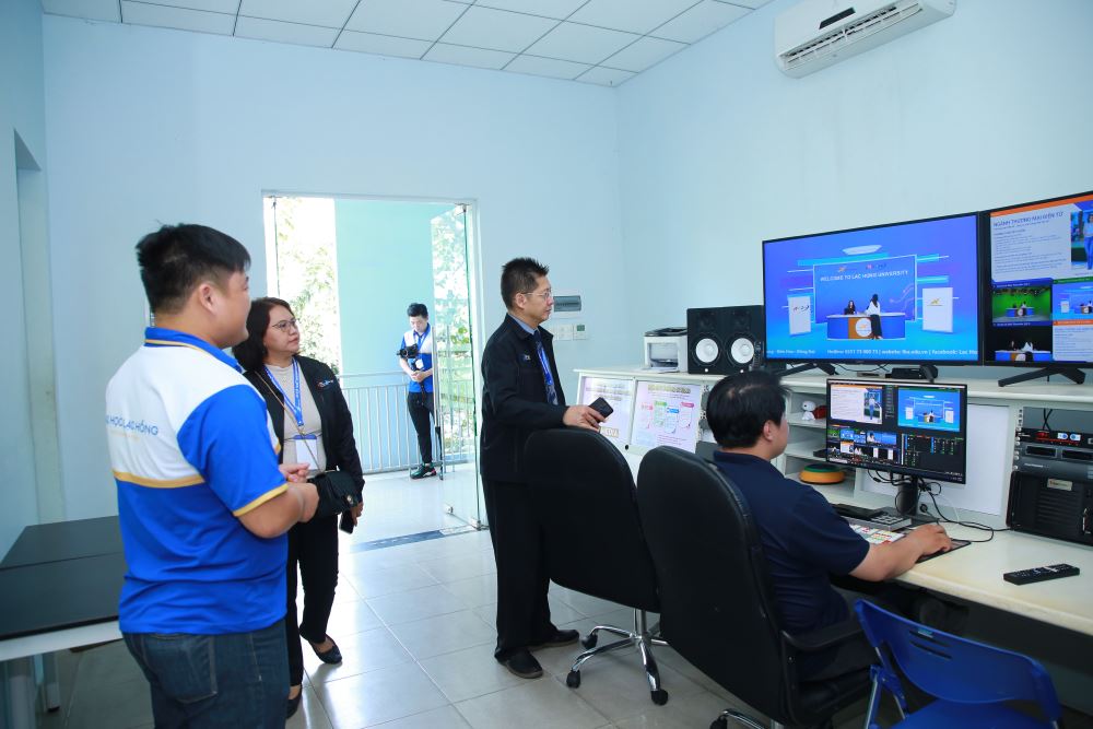 Visiting the studio room (or LHU's mini TV station) right when students were producing the bulletin of the opening of the AUN - QA assessment, Assoc. Prof. Dr. Rusnadi Padjung - Hasanuddin University (Indonesia) admired the professional and convenient working and studying spaces of LHU students. He said "It's so great here, please take a picture for me right here, this position". Also, after knowing the functions of the room, Dr. Maria Resurreccion P. Alejo – Ateneo de Manila University (Philippines) expressed “This room is so special”.
