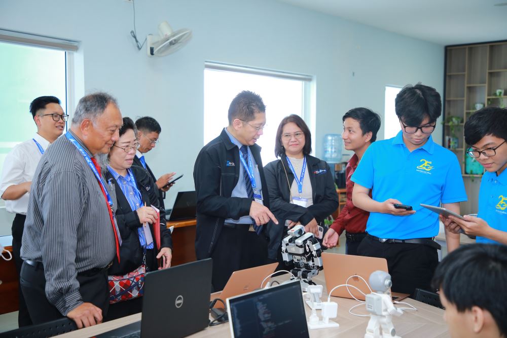 Especially, when visiting the AI Lab, the assessment team was so interested in robots and technology projects of lecturers and students. Assoc. Prof. Dr. Eric Wibisono - University of Surabaya, Chief of the assessment team directly "interviewed" robots of LHU. Through the programmed software, the robot's responses and actions made him quite excited and linger longer than scheduled.