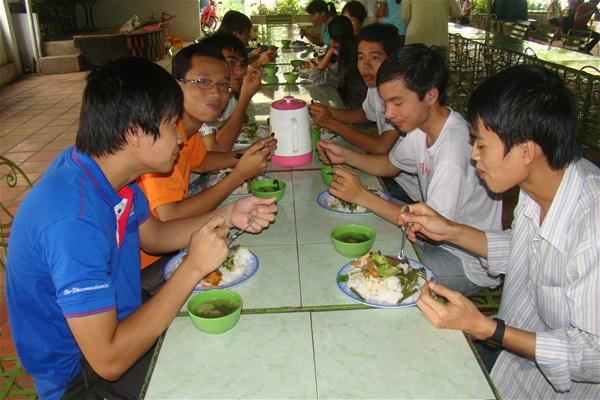 There is also a canteen with the size of 350 square meters near the dorm. Each day, the canteen can supply from 400 to 600 servings with reasonable prices to its students. Students living in the dorm are supported with lunches and dinners with the price only VND 4 thousand a meal.