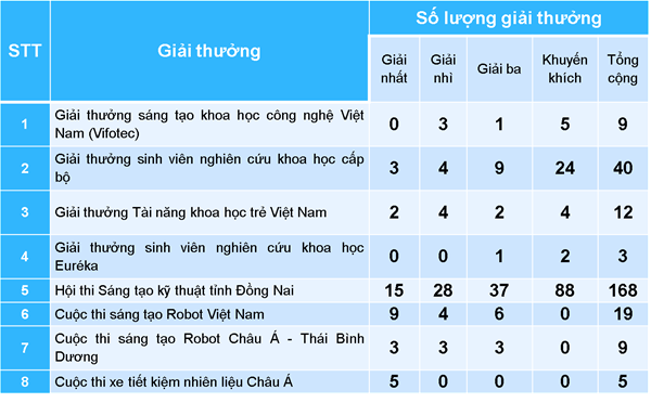In addition to articles published in journals, the University's scientific research activities has won many prizes in domestic and foreign science and technology competitions. Early 2020, LHU had 9 prizes at Vifotec Award, 40 prizes at the Ministry-level Student Scientific Research, 12 prizes at the Vietnamese Young Science Talents Award, 3 Euréka Awards, 168 prizes at the Dong Nai province Technical Invention Contest, 28 prizes at the domestic and international Robocon competitions (including nine national and three international championships), 5 international championships at the Shell Eco-marathon Asia. In the Shell Marathon London 2019, LHU was the only Asian face ever to participate in this arena and ranked fourth.
