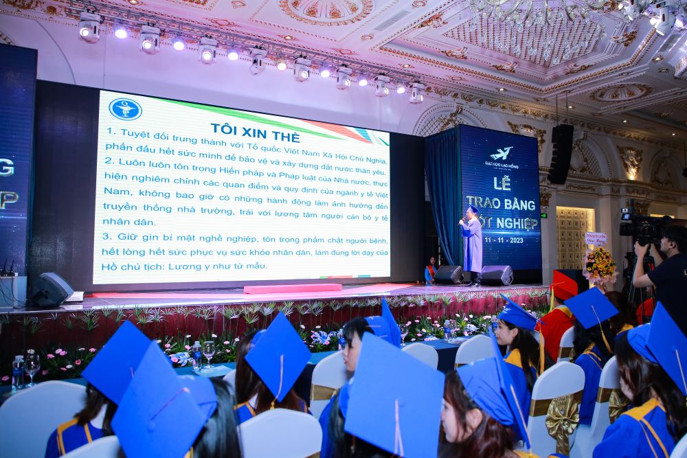 At the event, the new pharmacists solemnly performed the medical oath rite. This is one of the most meaningful moments of the ceremony.