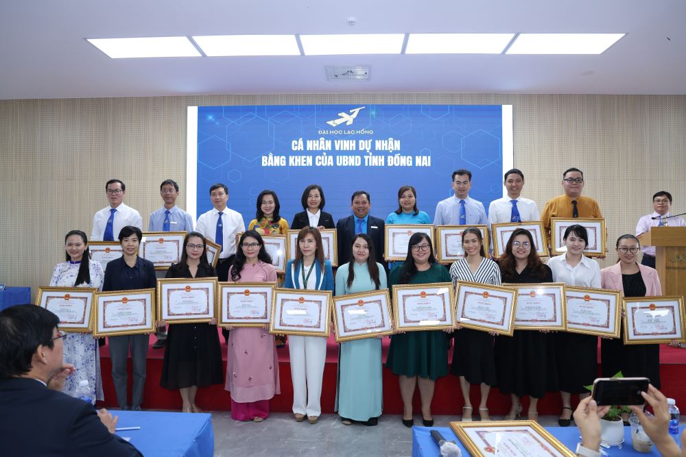Outstanding individuals and groups of LHU receiving Dong Nai provincial People's Committee certificates of merit