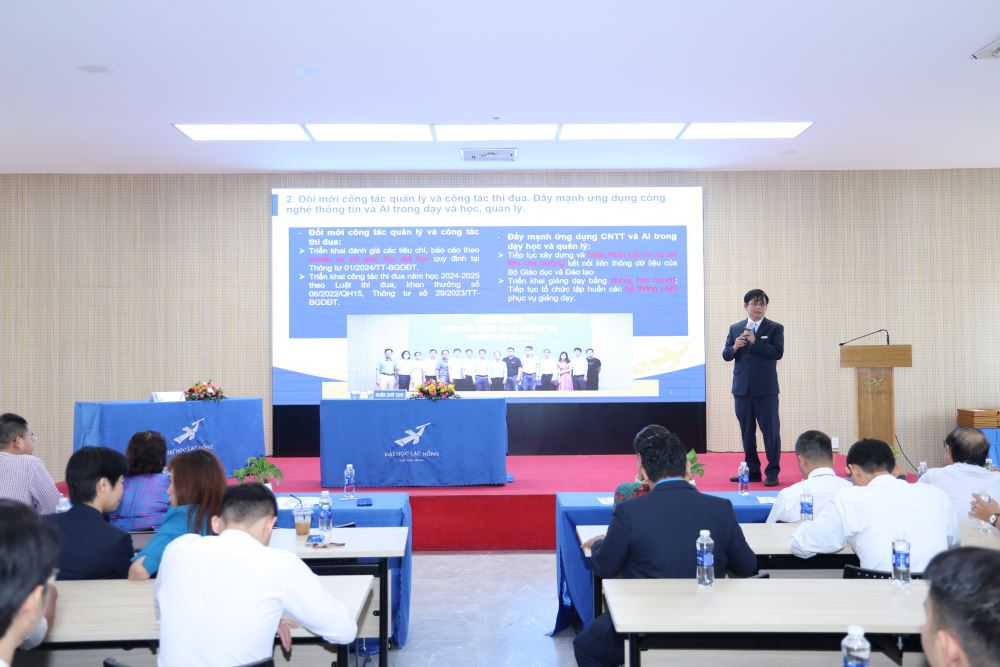 After the summary reports, the 2024-2025 academic year emulation movement was officially launched, aiming to boost creativity and efficiency in the workplace. Hopefully, with the high solidarity and determination, all employees will overcome challenges together and continue to contribute to the sustainable development of LHU in the new academic year.