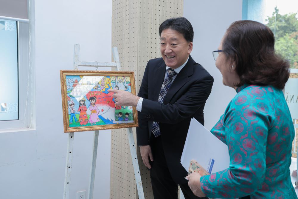 Delegates visiting paintings on Vietnam - Japan friendship created by Dong Nai students