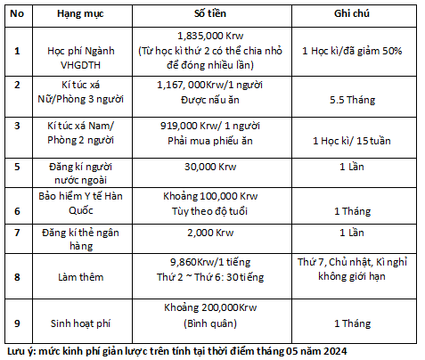 +Phí bảo hiểm: Sinh viên người nước ngoài đóng bảo hiểm Y tế xã hội theo quy định của Bộ tư pháp Hàn Quốc.