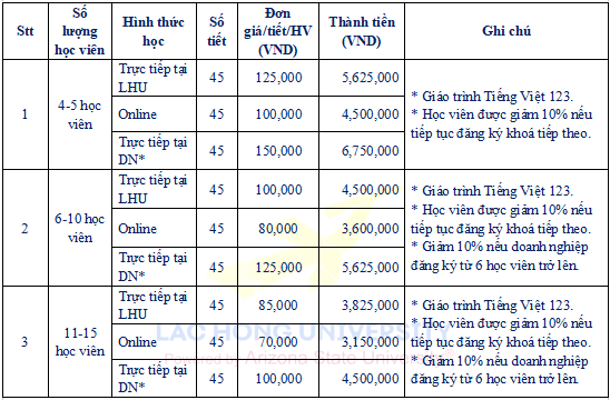 2. LỚP TIẾNG VIỆT 01 NĂM DÀNH CHO NGƯỜI ĐI LÀM