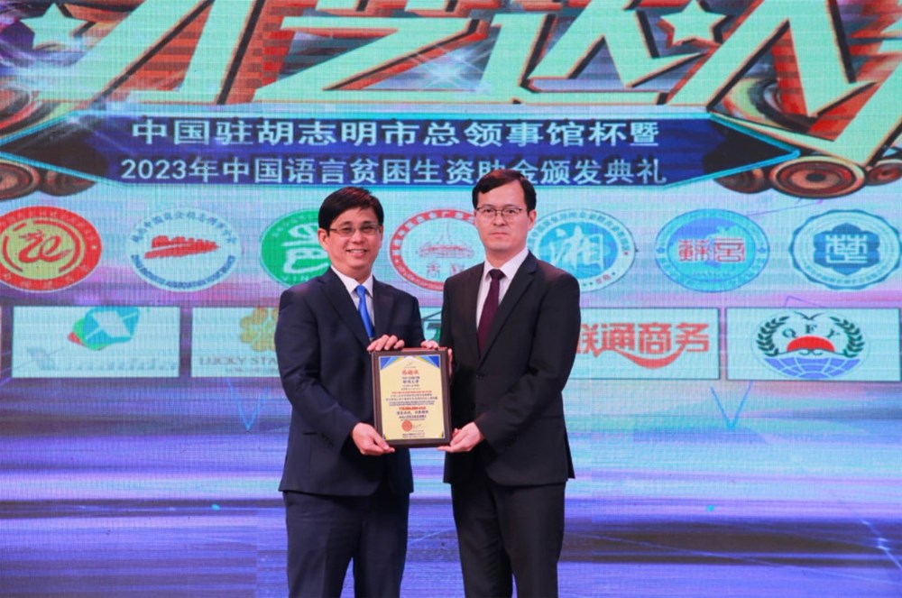 On the afternoon of November 18, 2023, at The Mira Central Park hotel, the Chinese Language and Literature Department organized the final night of the "Got Talent Search for Chinese Language Talents competing for the Ho Chi Minh City Chinese Consulate General Cup and Scholarship Award Ceremony for Students in Difficult Circumstances 2023".