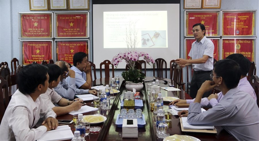 Before the Department's proposals, LHU quickly arranged appropriate personnel to support the competitions. The working session was also attended by Permanent Vice Rector Lam Thanh Hien, Dean of Faculty of International Economics Nguyen Van Tan; Vice Dean of Faculty of Mechatronics - Electronics Le Phuong Truong and Head of Automation and Control Engineering Technology Le Hoang Anh - Vice Chairman of Robocon Lac Hong Organization Board.