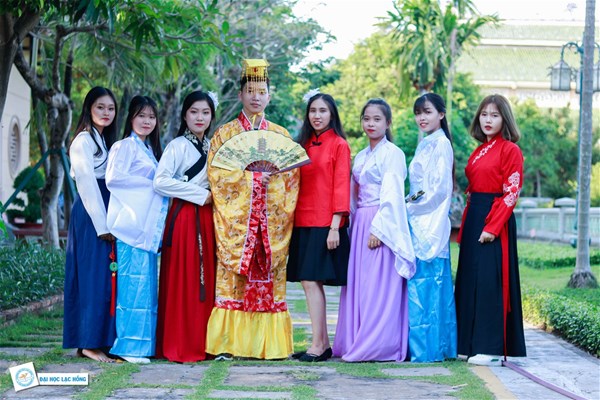 Sinh viên LHU hóa trang trong trang phục truyền thống của người Trung Quốc