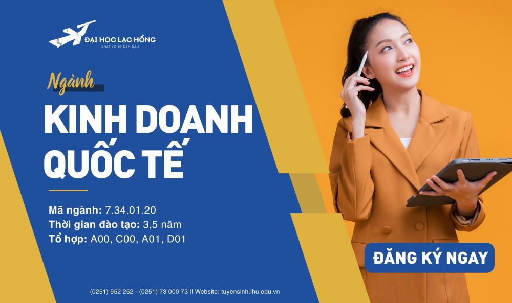 Khi cánh cửa hội nhập ngày một rộng mở, hoạt động Kinh doanh quốc tế nhanh chóng trở thành cánh tay đắc lực, giúp cho nền kinh tế phát triển theo hướng toàn cầu hóa, làm tăng kim ngạch xuất nhập khẩu và giải quyết nhiều vấn đề khác về thương mại quốc tế. Để kịp thời nắm bắt xu thế hội nhập quốc tế và Giữ vai trò chủ chốt trong cán cân thương mại Quốc tếhãy nhanh chóng lựa chọn cho mình ngành Kinh doanh quốc tế của Trường Đại học Lạc Hồng bạn nhé!
