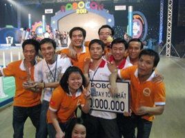 Sinh viên Lê Hoàng Anh cùng các thành viên đội LHU-2 tham gia cuộc thi Robocon 2005