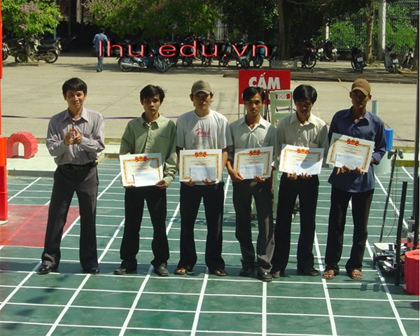 Lê Thanh Phong người thứ 2 bên trái đang nhận giải tại cuộc thi Robocon cấp trường năm 2006