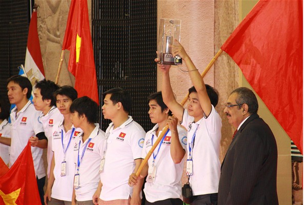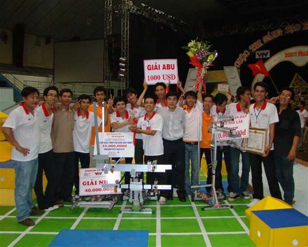 Thầy Lê Thanh Phong người cầm cờ bên phải đang nhận giải Á quân tại cuộc thi Robocon Châu Á-Thái Bình Dương năm 2010 tại Cairo Ai Cập.