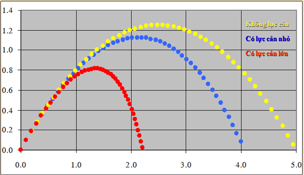 Quỷ đạo chuyển động của mầm khi có lực cản lớn