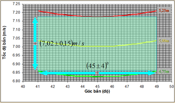 1. Gốc bắn và tốc độ bắn: Sau khi tính toán ta vẽ được biểu đồ liên hệ giữa góc bắn và tốc độ bắn như sau.