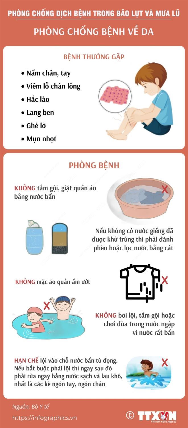 Phòng chống dịch bệnh trong bão lụt và mưa lũ: Phòng chống bệnh về da