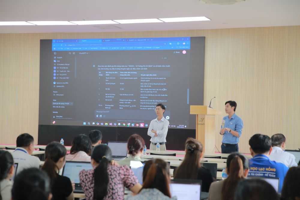 The workshop brought together a significant number of lecturers from various faculties of Lac Hong University. It was graced by prominent experts in AI applications within education, including Dr. Le Phuong Truong, Head of the Office of Educational Testing and Quality Assurance; and M.A. Nguyen Trong Vinh, Head of the Office of Academic Affairs. Their contributions provided invaluable and up-to-date insights for all attendees.