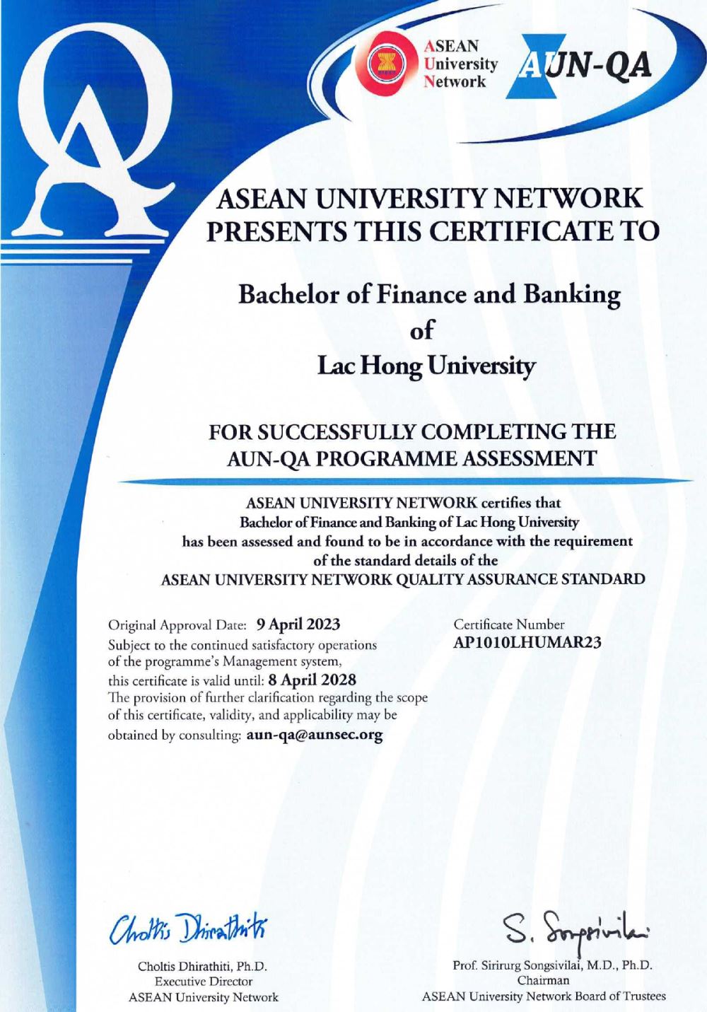 Our university takes pride in its accomplishments in achieving AUN-QA certification for several training programs. These include: