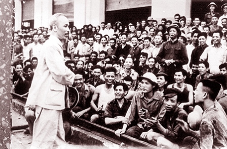 Bác Hồ nói chuyện với công nhân ngành đường sắt Việt Nam (Ảnh tư liệu)