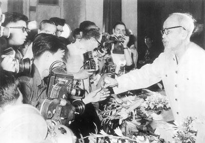 Chủ tịch Hồ Chí Minh với các phóng viên báo đài (Ảnh tư liệu)
