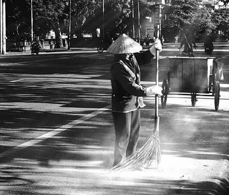 Hình ảnh người công nhân quét đường (Ảnh minh họa).
