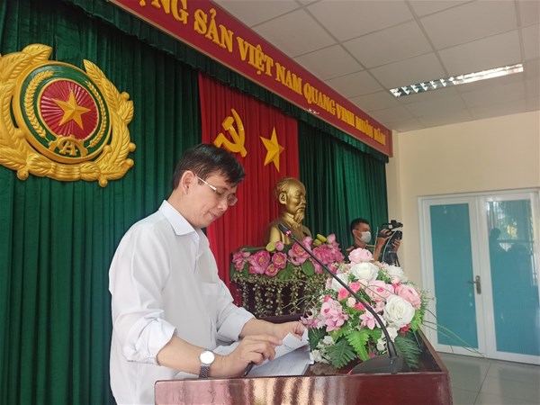 Hình 2: Thầy Lâm Thành Hiển, Khối trưởng Khối thi đua phát động phong trào thi đua toàn dân bảo vệ ANTQ