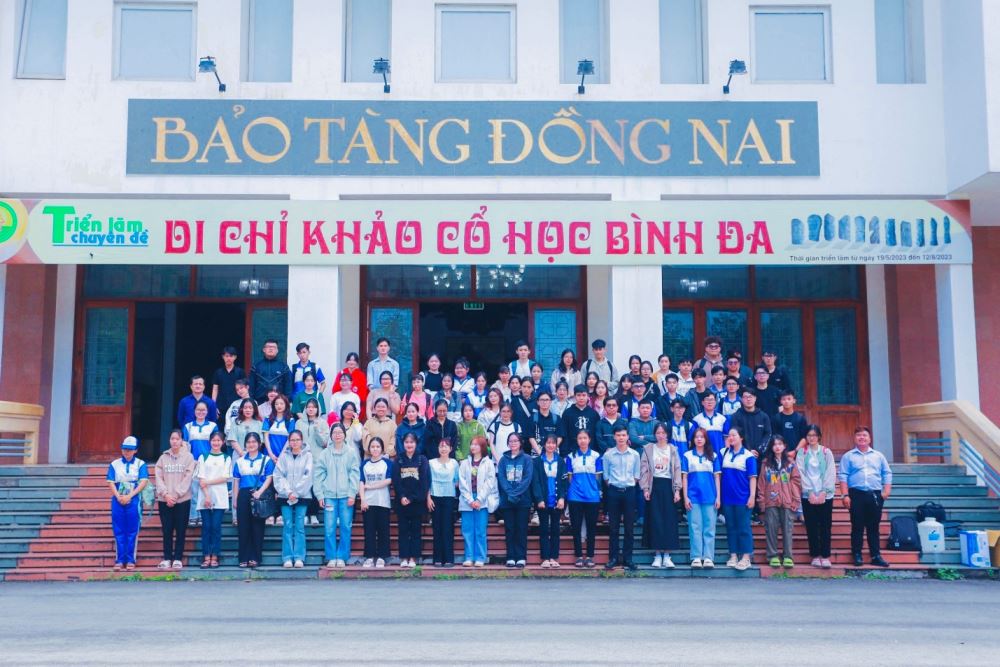 Tân sinh viên 2K5 chụp ảnh lưu niệm tại Bảo tàng tỉnh Đồng Nai