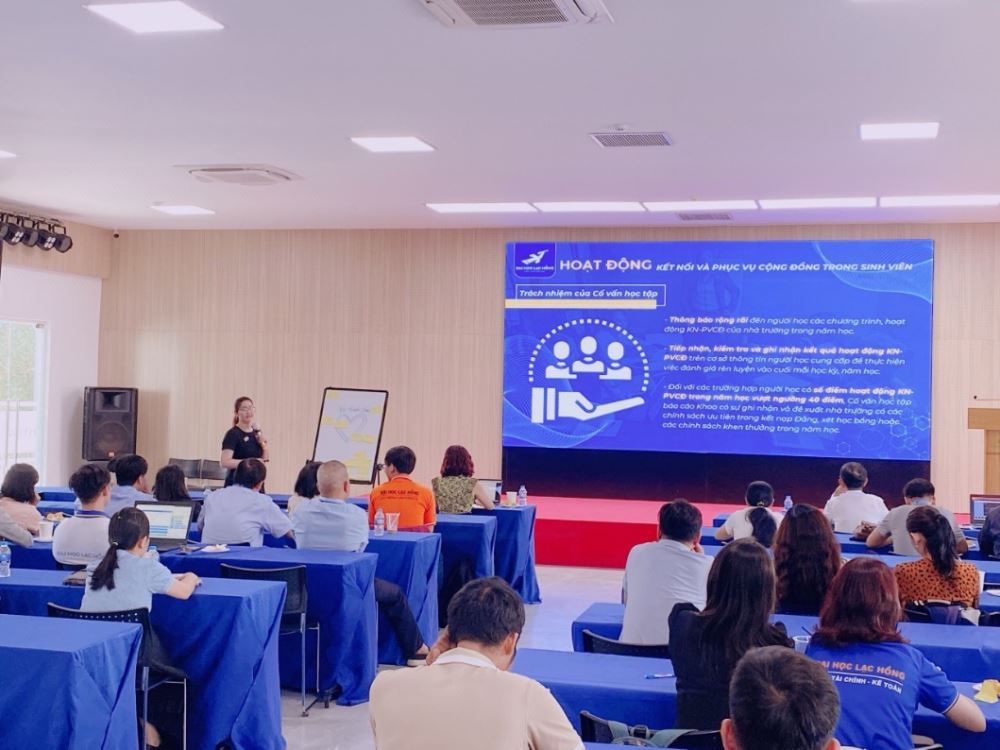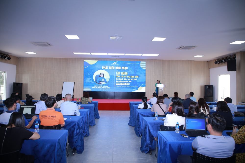 Để nâng cao chất lượng công tác chăm sóc sức khỏe tinh thần sinh viên; đồng thời giúp cho đội ngũ CB, GV, NV làm công tác Cố vấn học tập và quản sinh tại các khoa thực hiện tốt nhiệm vụ được giao, xây dựng Trường Đại học Lạc Hồng hạnh phúc, sáng ngày 24/01/2024, Nhà trường đã tổ chức thành công Hội nghị tập huấn công tác hỗ trợ sinh viên năm học 2023-2024.