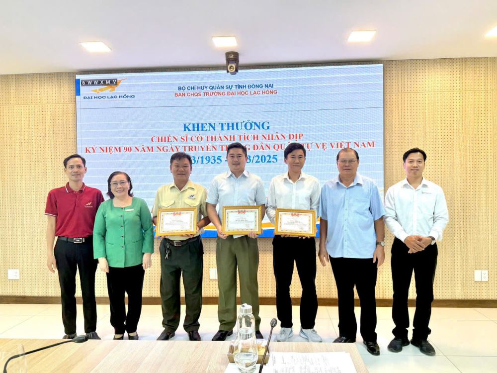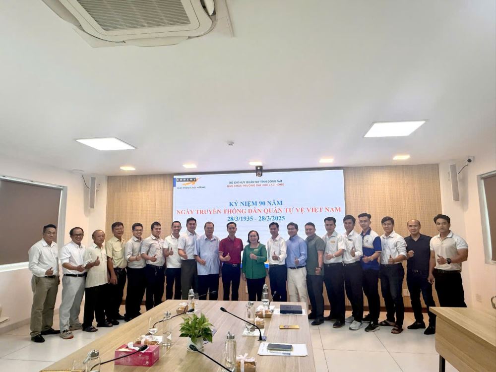 Vào sáng ngày 27/3/2025, Ban CHQS Trường Đại học Lạc Hồng đã tổ chức Lễ kỷ niệm 90 năm Ngày Truyền thống Dân quân tự vệ Việt Nam (28/3/1935 - 28/3/2025). Buổi lễ có sự tham gia của NGƯT. Ts Nguyễn Thị Thu Lan, Phó Bí thư đảng ủy, Phó Hiệu trưởng, Chỉ huy trưởng Ban CHQS trường cùng các đồng chí trong Ban Chỉ huy và chiến sĩ thuộc đơn vị.