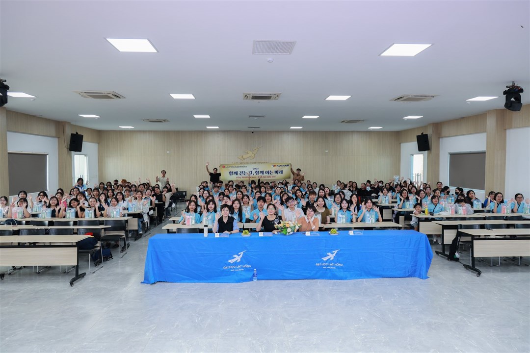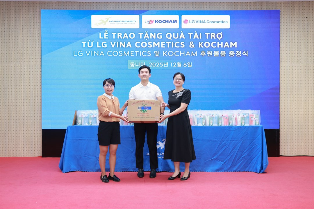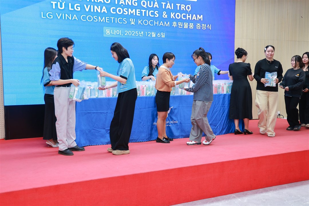 Chiều ngày 06/12/2025, tại Hội trường A301 – Cơ sở 1, Trường Đại học Lạc Hồng, Ngành Hàn Quốc học) đã long trọng tổ chức Lễ Trao tặng Quà tài trợ từ Công ty LG Vina Cosmetics và Hiệp hội Doanh nghiệp Hàn Quốc tại Việt Nam (KOCHAM).