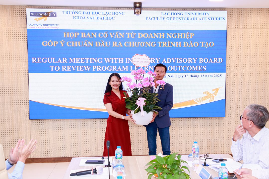 Vào sáng ngày 13/12/2025, tại phòng họp cơ sở 1, buổi họp Ban cố vấn từ doanh nghiệp đã diễn ra với sự tham dự của Ban giám hiệu, Tập thể khoa Sau Đại học, Trung tâm Tuyển sinh và Quan hệ công chúng Trường Đại học Lạc Hồng và nhiều đại diện từ các doanh nghiệp có quy mô lâu đời trên địa bàn tỉnh và các khu vực lân cận. Đây là một sự kiện quan trọng trong năm học 2025 - 2026, nhằm thúc đẩy mối quan hệ hợp tác giữa nhà trường và các doanh nghiệp.