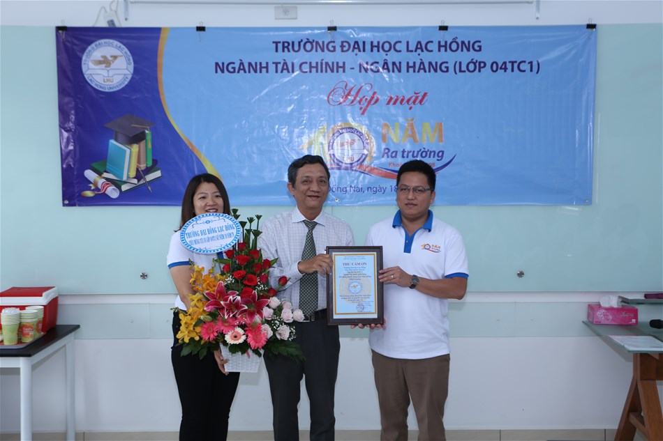 Sau 10 năm chúng tôi được gặp lại, được lắng nghe lời chia sẽ và cùng các bạn lớp 04TC1 ôn lại một phần kí ước thòi sinh viên. Nhìn lại từng thế hệ sinh viên đã trưởng thành và mỗi người đã có hướng đi riêng và một công việc ổn định vững vàng. Anh chị cựu sinh viên lớp 04TC1 mặc dù sinh sống và làm việc ở những tỉnh xa xôi như Hải Phòng, Bình Định, Quảng Ngãi, Nha Trang, ĐăkLăk không ngại khoảng cách địa lý đã cùng với các anh chị cựu sinh viên đang sinh sống tại Đồng Nai quay về lại ngôi trường mà 10 năm trước đây các bạn theo học tập và trãi qua thời sinh viên đầy mơ ước khát vọng tuổi trẻ. Về phía nhà trường Thầy Ts Nguyễn Văn Nam- Phó hiệu trưởng nhà trường đã có đôi lời chia sẽ đầy xúc động khi Trường Đại học Lạc Hồng đón chào các bạn cựu sinh viên lớp 04TC1 và bên cạnh đó Thầy gửi lời cám ơn đến các cựu sinh viên khi các anh chị trao 10 suất học bổng dành cho sinh viên nghèo vượt khó, đây chính là sự hỗ trợ đầy tính nhân văn mà những anh chị cựu sinh viên gữi tới các bạn sinh viên đang học tại trường bên cạnh đó là 06 bộ ghế đá lưu lại kỹ niệm ngày hợp lớp.
