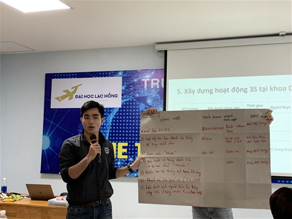Trong buổi tập huấn đầu tiên, thầy TS. Lê Hoàng Anh đã giới thiệu về 3S và cách thức triển khai 3S. Thông qua trải nghiệm thực tế với trò chơi xếp lego, các giảng viên, nhân viên Khoa Dược đã nhận ra được sự cần thiết và lợi ích của 3S trong đời sống, đặc biệt là trong giảng dạy thực hành và quản lý phòng thí nghiệm.