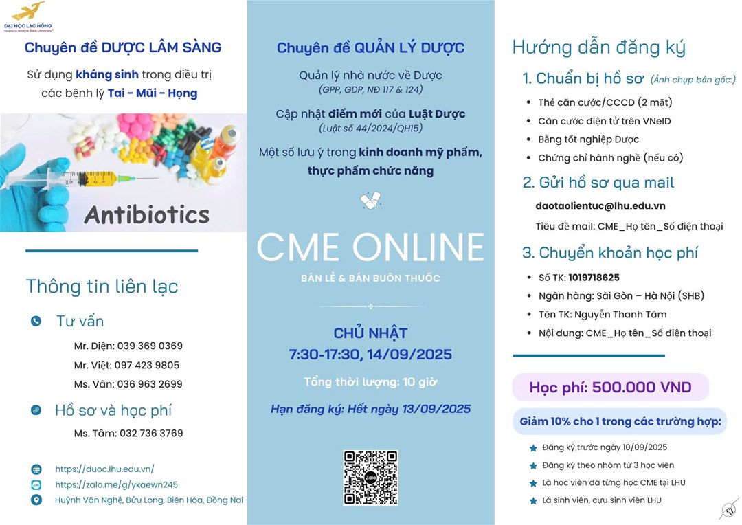THÔNG BÁO LỚP CẬP NHẬT KIẾN THỨC CHUYÊN MÔN VỀ DƯỢC NGÀY 14.9.2025