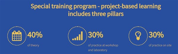 With the educational philosophy of learner-centeredness, FCE has developed a special training program with the core value including three domains: 40% of Learning at Classroom, 30% of Learning at Laboratory and Practical Workshop and 30% of Practical Learning at Construction Sites. To realize the special training program, the faculty has gathered a team of really elite lecturers who have over 10 years of teaching and own their construction business. Besides, there are modern facilities with a system of practical workshops and laboratories to meet the needs of teaching and learning according to the training program based on the three domains.