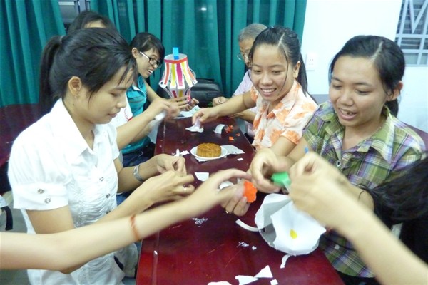 Mọi người đã cùng nhau thảo luận, cùng nhau tham gia trò chơi "Làm lồng đèn Trung Thu" và nhận quà từ BTC.