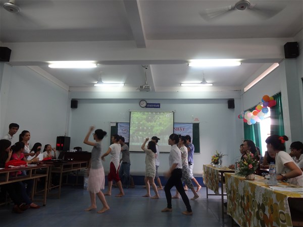 1. Diễn kịch bằng tiếng Nhật: “Tai, mắt, mũi, miệng, tay, chân”. Đây là vở kịch được sinh viên năm thứ 2, ngành Nhật Bản học dàn dựng dựa trên câu chuyện ngụ ngôn Việt Nam nói về sự đoàn kết. Vở kịch đã thu hút sự quan tâm theo dõi của tất cả các thành viên tham dự và để lại một ấn tượng khó quên trong lòng người xem. Để có thể ra mắt trong buổi sinh hoạt Câu lạc bộ lần này, tập thể lớp 12DN112 đã cố gắng rất nhiều từ khâu chuyển dịch lời thoại sang tiếng Nhật, thiết kế trang phục, diễn tập...