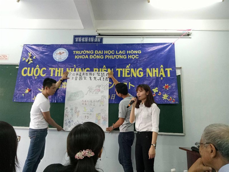 Sinh viên với sự tự tin, năng động và khả năng tiếng Nhật tốt đã truyền đạt được những nội dung trong bài viết của mình. Phần thiết kế Poster của các em rất sinh động, cầu kỳ, thu hút sự hứng thú của người xem. Các em sinh viên năm hai nhưng phát âm tiếng Nhật rất tốt, trình bày tự tin, lưu loát với những nội dung thú vị như là: gia đình, đất nước, giấc mơ, giao thông, rác thải…