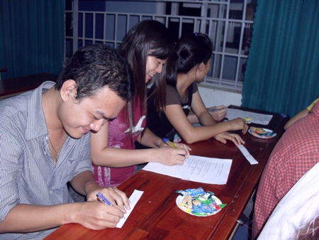 Mọi người chăm chú tham gia trò chơi "Hoàn thành câu tiếng Nhật có nghĩa"