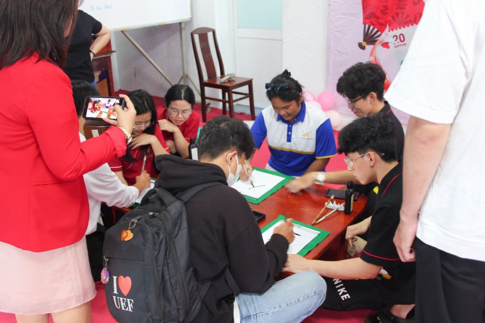 Sinh viên trải nghiệm thư pháp