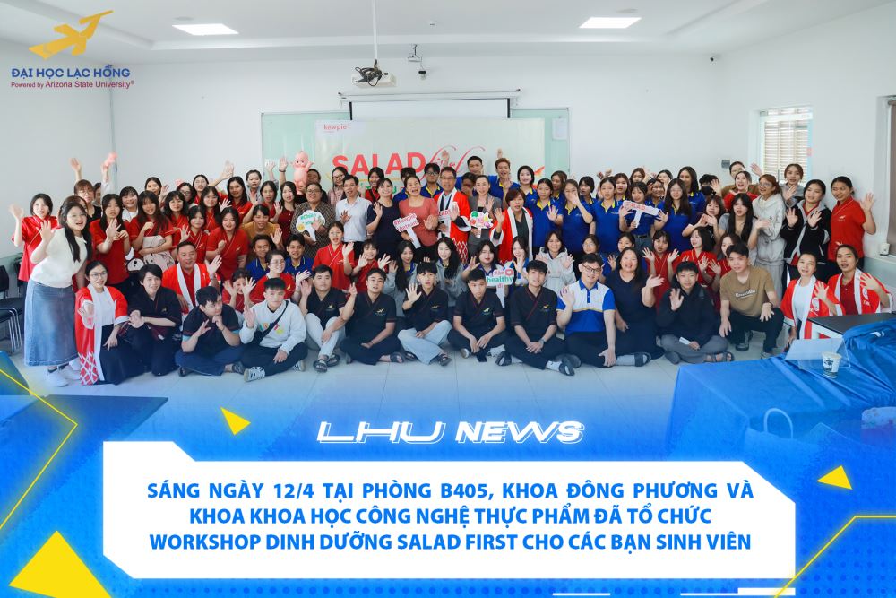 Sáng thứ Bảy, ngày 12/4/2025 tại cơ sở 1 – Đại học Lạc Hồng, sự kiện “Workshop dinh dưỡng Salad First” đã diễn ra sôi nổi với sự phối hợp tổ chức giữa Khoa Đông Phương học và Khoa Khoa học Công nghệ và Thực phẩm. Đặc biệt, chương trình hân hạnh chào đón sự tham gia của đơn vị khách mời – Công ty TNHH Kewpie Việt Nam, thương hiệu nổi tiếng với các sản phẩm sốt mayonnaise và thực phẩm chất lượng cao đến từ Nhật Bản.