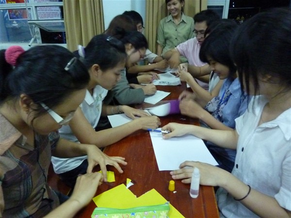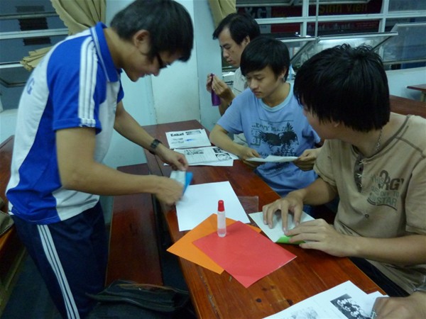 Mọi người cùng thử tài với trò chơi xé giấy và dán thành hình các món ăn