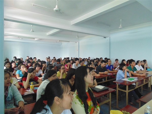 Cả khán phòng đều chăm chú theo dõi phần trình bày về khóa tập huấn