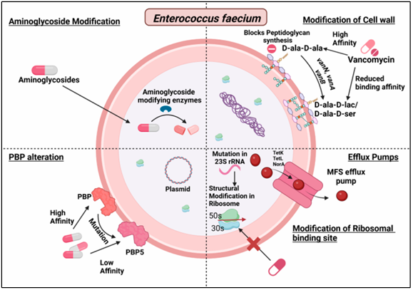 Hình 4. Cơ chế đề kháng kháng sinh của E. faecium