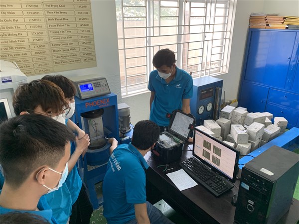 Faculty of Civil Engineering develops a special training program includes three pillars: 40% of theory, 30% of practice at workshop and laboratory, and 30% of practice on site. The students learn theoretical subjects associated with practice at the laboratory.