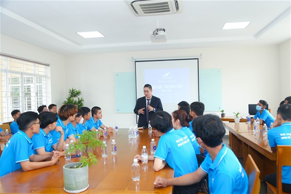 Attending the meeting, there were faculty members and all freshmen of Class 22XC111 and 22XD111 and representatives of other classes. There was also business representative, Mr. Nguyen Tan Loc - Chairman of the Board of Directors of GSB Steel Structure Company, who was invited by the Faculty to interact with the new students.