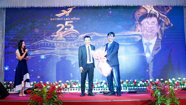 Dean Nguyen Khanh Hung presented grateful flower to Rector Lam Thanh Hien